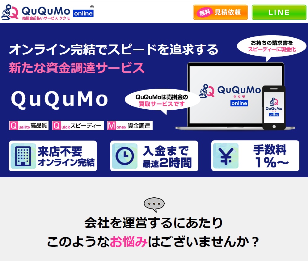 QuQuMoは、取引実績では上記二つにやや劣るものの、入金までの時間も早く人気のあるファクタリング会社です。